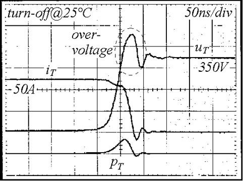 Figure 2 shows the turn-off measurement at low temperature for the same IGBT (a typical temporary operating state after turning on a device). At room-temperature (25°C) switching losses are comparably small but it’s an important worst case concerning overvoltage peaks. We want to mention it here, although it has no direct impact on the thermal design.
