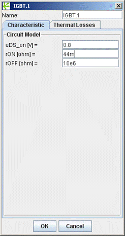 The next step is to characterize the power switches in the simulator according to the datasheet values. Double-click the IGBT-symbols in the power circuit of GeckoCIRCUITS. Set the parameters for loss calculation with the values derived from the datasheet as shown in figure 6.