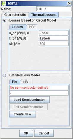 Fig. 6: Setting Conduction and Switching Losses of the IGBT.